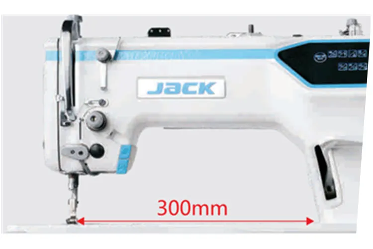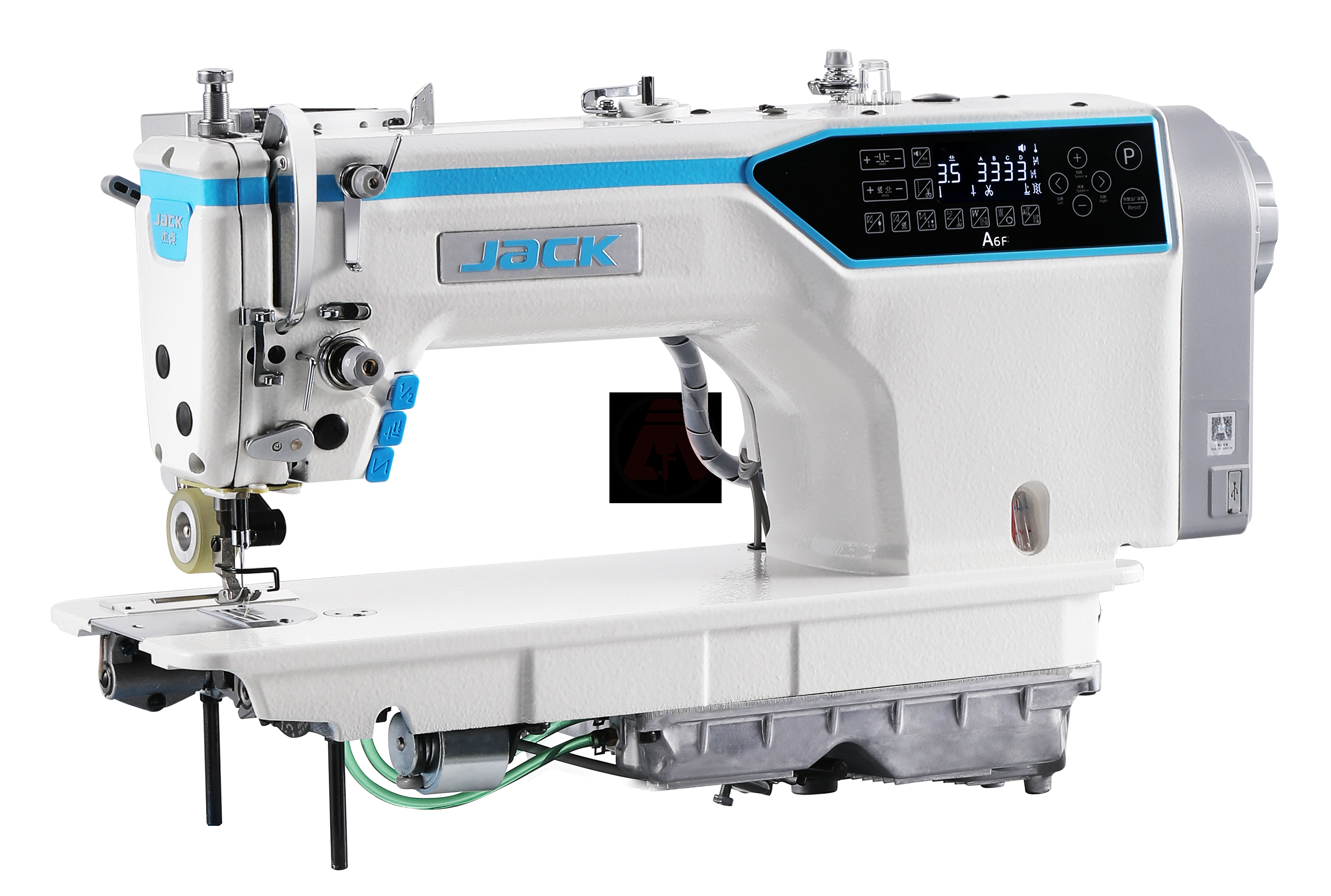 Jack A6F to specjalistyczna maszyna jedno-igłowa wyposażona w transport ząbkowo-igłowy o powiększonym polu pracy (odległość między igłą a ramieniem to aż 30cm). Maszyna posiada wbudowany silnik energooszczędny zamontowany bezpośrednio na wale głównym maszyny (Direct-Drive), dzięki czemu silnik jest o 70@ bardziej energooszczędny w porównaniu do silników sprzęgłowych. Stebnówka posiada zamknięty układ smarowania co gwarantuje mniejsze zabrudzenie oleju a dzięki temu maszyna jest lepiej smarowana. Energooszczędne oświetlenie pola pracy LED zamontowane przy igielnicy. Maszyna wyposażona w puller odbierający materiał z ząbków
